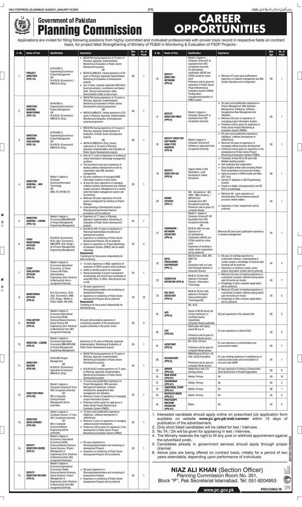 Planning Commission Jobs 2020 Ministry of planning Government Of pakistan
