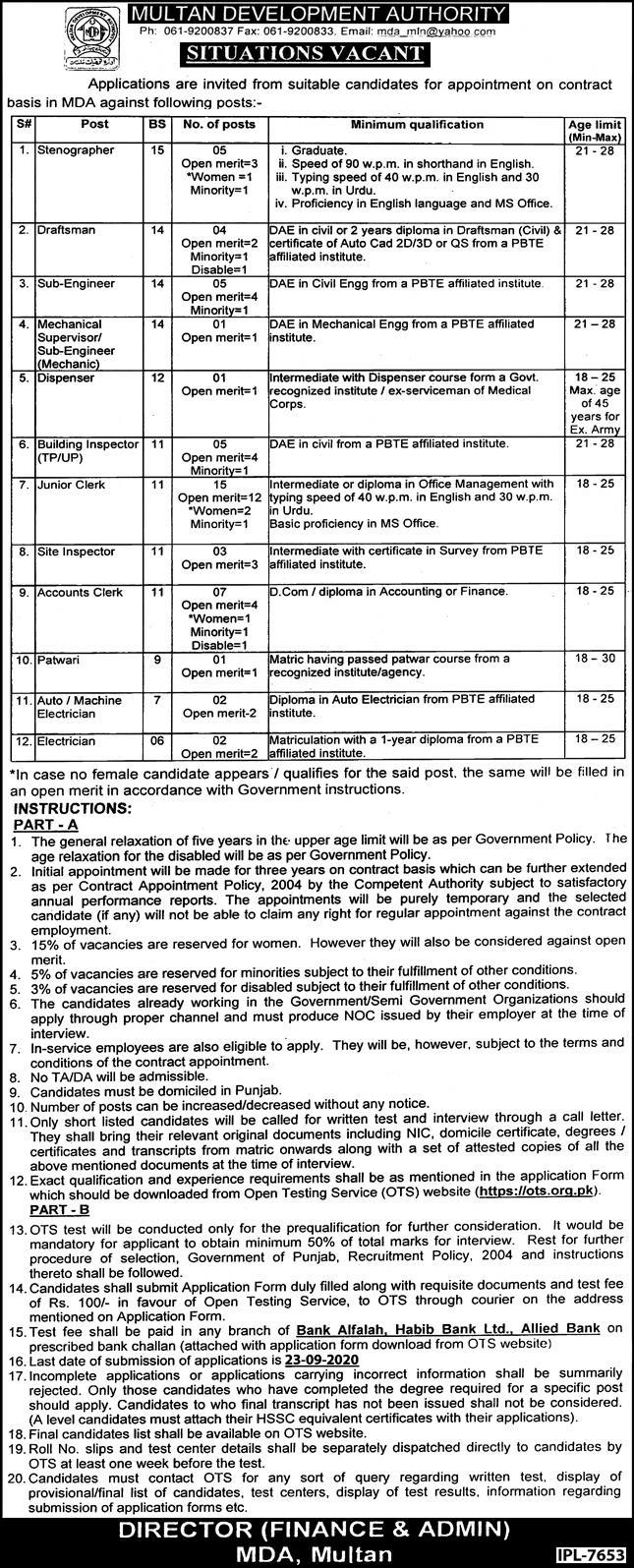 You are on the job page.Here we will tell you about the latest jobs announced by the Multan Development Authority MDA Jobs 2020 which should be filled out immediately. Interested candidates may apply through this website jobbbazaar.info or through the appropriate channel as advertised. Incomplete and late submissions / requests will not be entertained. Only short listed candidates will be preferred for selection process. No TA / DA will be accepted for a test / interview. If you need any information or help with this job, feel free to contact us by email or in the comment box. youtube You can see all these links in the upper right corner of this page. You can see the ad below for more details. Further detail of this opportunity is mention below.