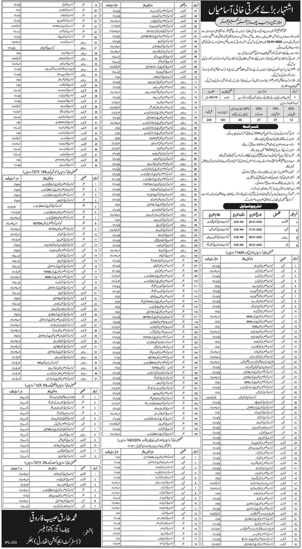 Jobs in Bhakkar Education Department 2022 for Class IV Staff