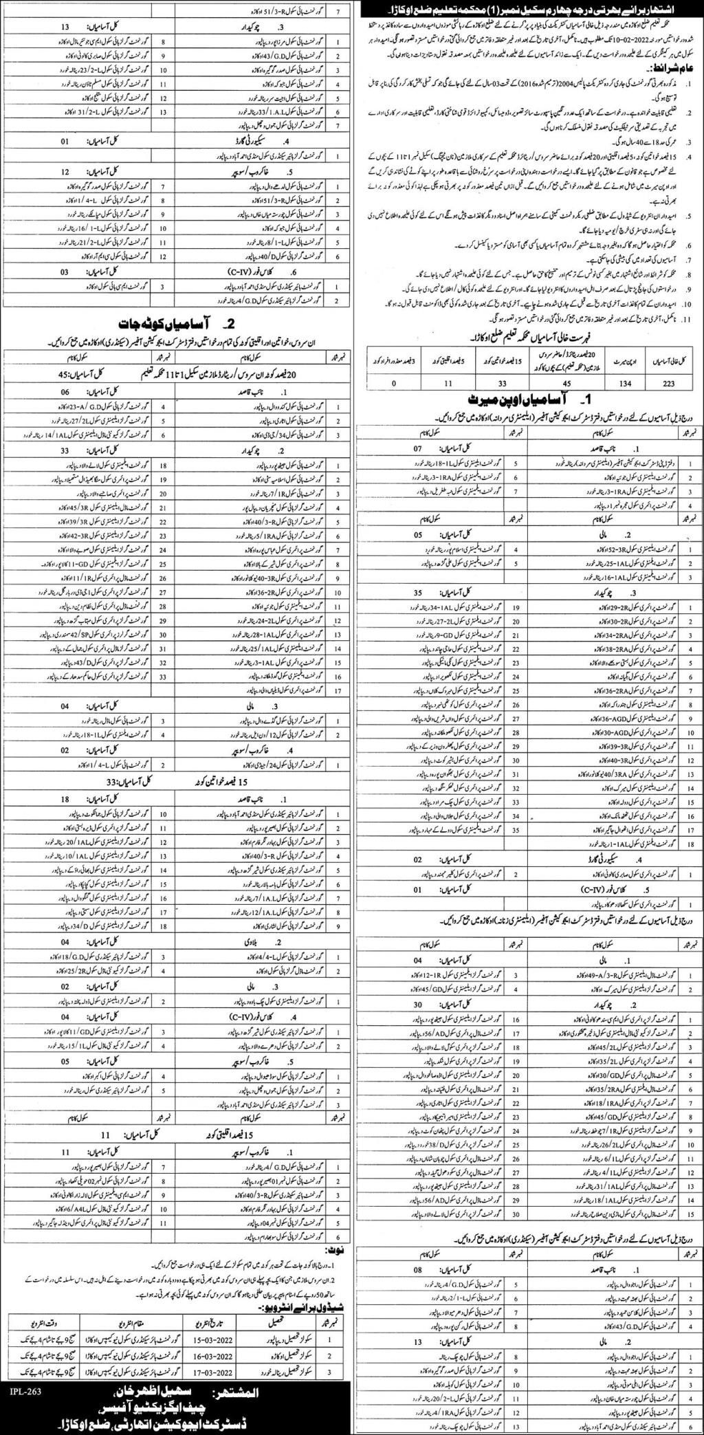 Jobs in Okara Education Department 2022 for Class IV Staff